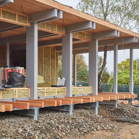 Víceúčelový altán v ornamentální části botanické zahrady v Praze je navrhnut jako celodřevěná konstrukce z masivních rámů a stěnových panelů, osazená na piloty podepřené ocelové konstrukci. V dřevěné konstrukci jsou použity novodobé lepené materiály KVH i BSH z konstrukčního smrkového a z pohledového, povětrnosti exponovaného modřínového řeziva. Spojování a kotvení konstrukčních prvků je zajištěno ocelovými svorníky s bulldogy, samovrtnými kolíky a vruty. Není překvapením, že montážní práce probíhaly s maximálním ohledem na okolní flóru a že i výsledná moderní konstrukce je s přírodou citlivě propojena.