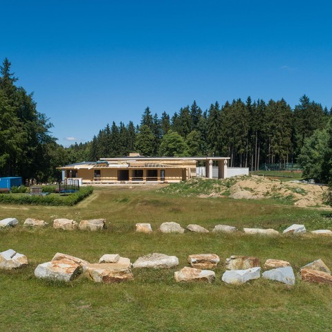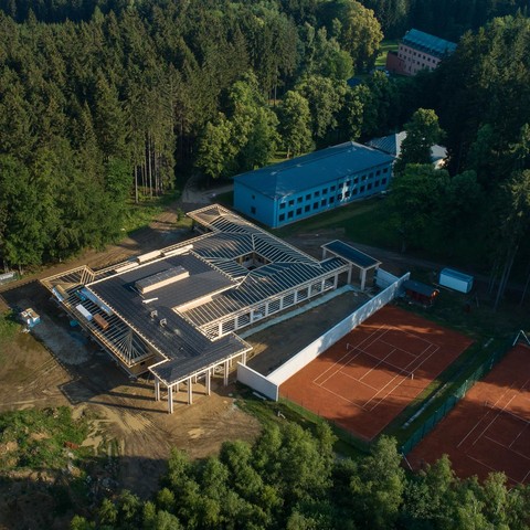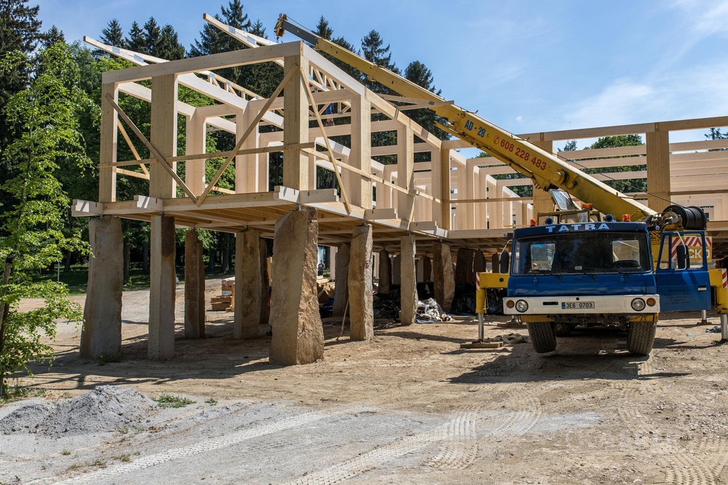 V prvním pololetí roku 2018 jsme realizovali kompletní dodávku nosné dřevěné konstrukce novostavby pavilonu Ayurvédské medicíny v Resortu Svatá Kateřina, který vznikl podle návrhu architekta Jakuba Tejkla. Skeletový nosný systém je zajímavý svým osazením na kameny (menhiry) výšky od 1 do 2 m a také atypickým tvarem sloupů – půdorysně ve tvaru „+“ „T“ a „L“ tyto byly vyrobeny dílensky a na stavbě se pouze osadily. Veškeré prvky konstrukce jsou strojně opracovány na CNC dřevoobráběcím centru Hundegger K2i. Celkový objem veškerého použitého řeziva byl cca 340 m3.