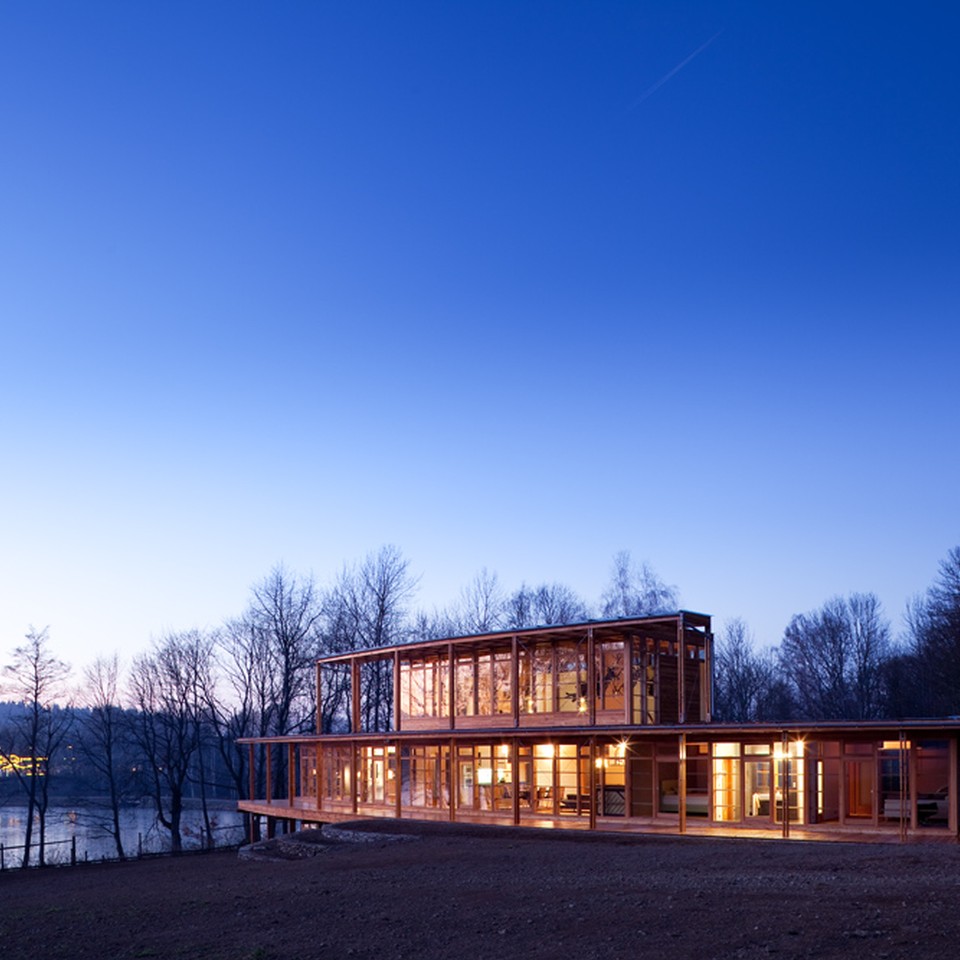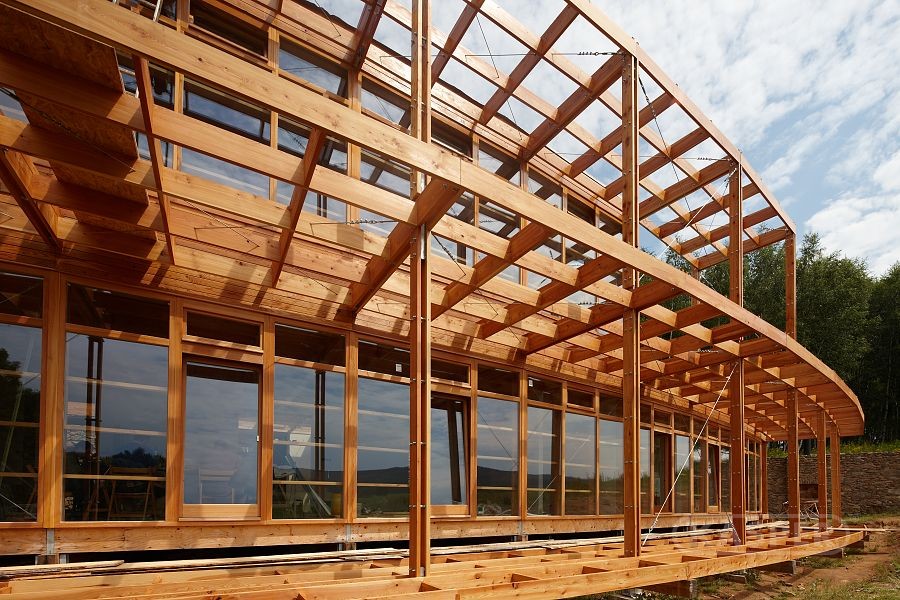Společnost KASPER CZ s.r.o. v nedávné době zrealizovala architektonicky zajímavou dřevostavbu, kterou navrhla významná architektonická kancelář e-MRAK s.r.o. profesora Martina Rajniše. Nenápadný rozsáhlý objekt s překrásným výhledem se nachází v chráněnné krajinné oblasti Český les. Dům je citlivě umístěn v mírně svažitém terénu nedaleko rybníka a přirozeně navazuje na okolní zvlněnou krajinu. Konstrukční návrh objektu jednoduše kombinuje přírodní materiály (modřínové dřevo, kámen, sklo, hlína) a společně s racionálním využitím přírodní, zejména solární, energie reprezentované systémem slunolamů podtrhuje základní konstrukční filozofii autorů návrhu prof. Ing. arch. Martina Rajniše a MgA. Davida Kubíka. Realizační dokumentace nosné konstrukce objektu byla zpracována ve firmě KASPER CZ s.r.o. ve spolupráci s e-MRAK s.r.o. pomocí specializovaného software pro dřevostavby SEMA. Kompletní digitální 3D zpracování celého objektu umožnilo odladit veškeré konstrukční detaily a následně rychle a přesně zajistit veškeré opracování dřevěných prvků na CNC strojích. Dílčí prefabrikované stěnové a stropní celky byly sestaveny ve výrobním závodě firmy na specializované lince FRAMER a následně převezeny na místo stavby.