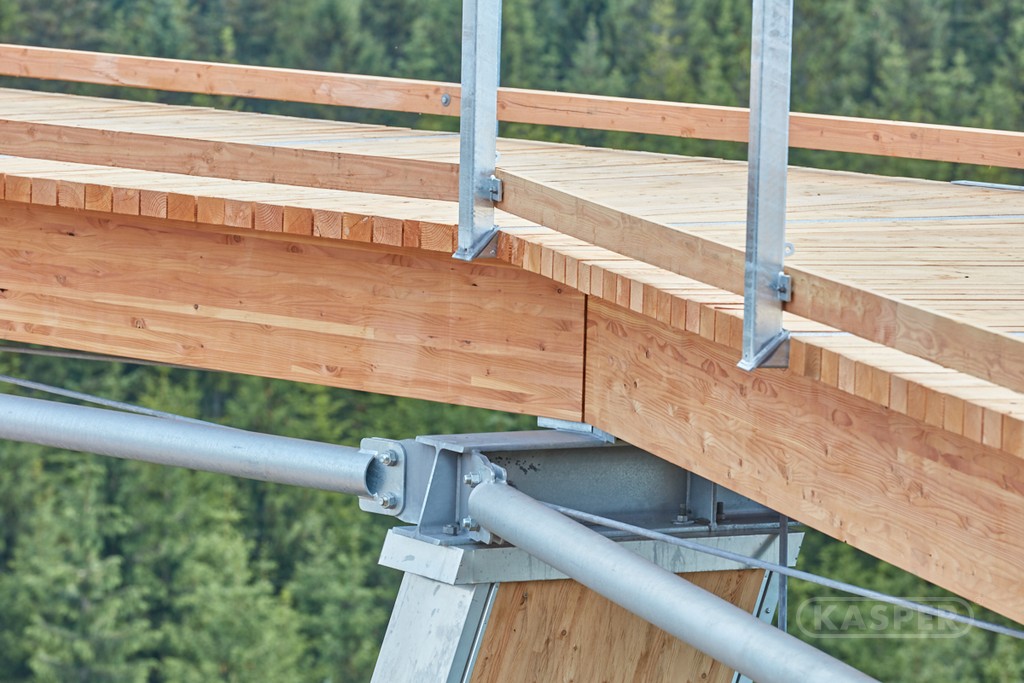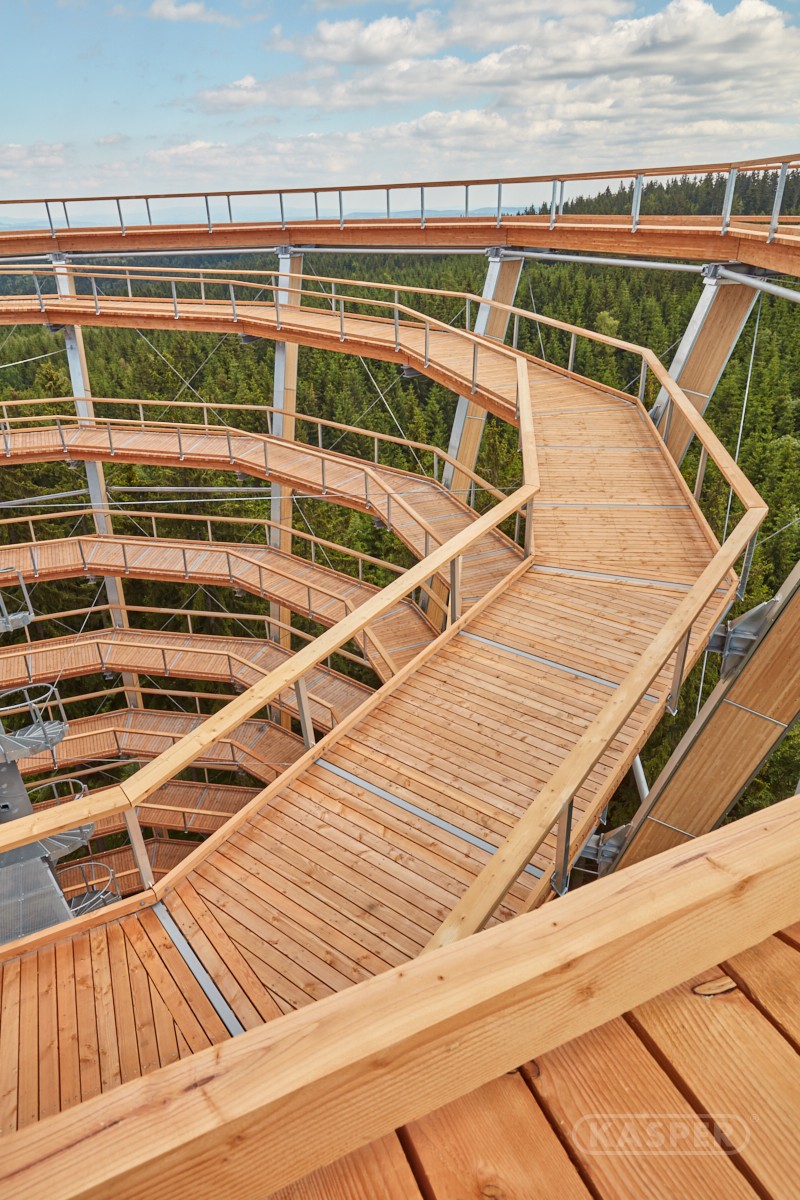 Firma KASPER CZ dodávala na Stezku korunami stromů prefabrikované dílce konstrukce podlahy vyhlídkové věže. Dodávku tvořilo 150 dílů délky 4–10 m, tvořených vždy z tří masivních nosných prvků doplněných nášlapnými hranoly podlahy. Vše bylo vyrobeno z řeziva borovice Douglasky.